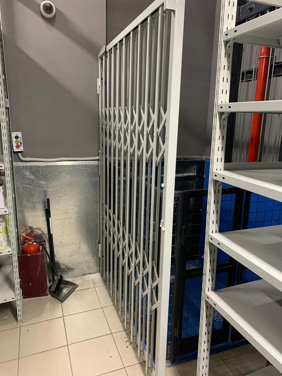 Раздвижное ограждение клети и шахты подъемника с этажной площадки.