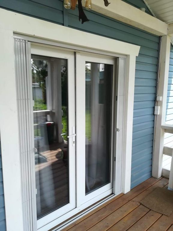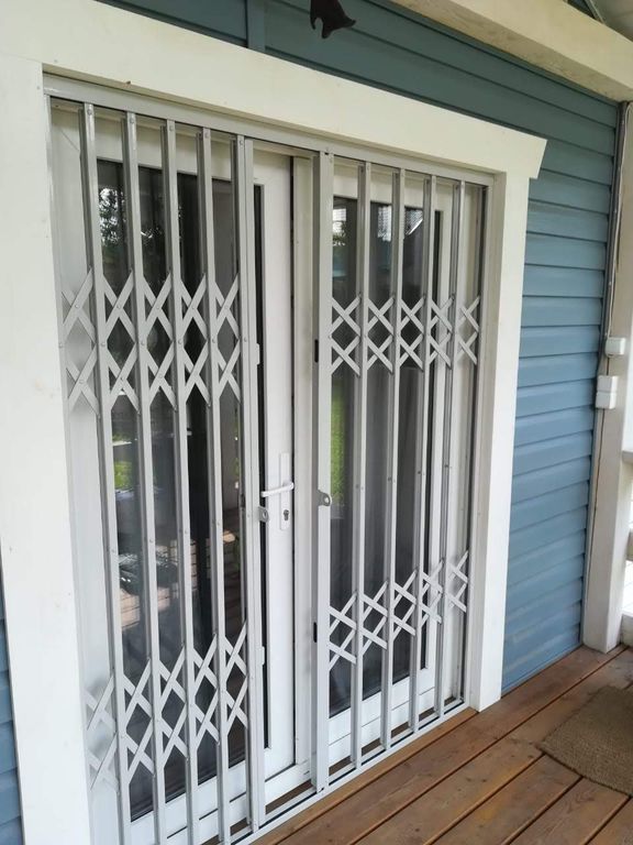 Раздвижная решетка в патио частного дома установлена со стороны веранды.